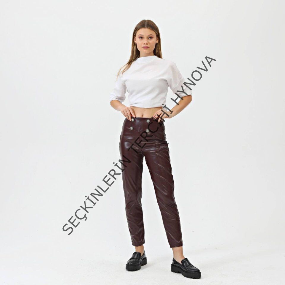 Düğmeli̇ Yan Fermuarli Deri̇ Pantolon