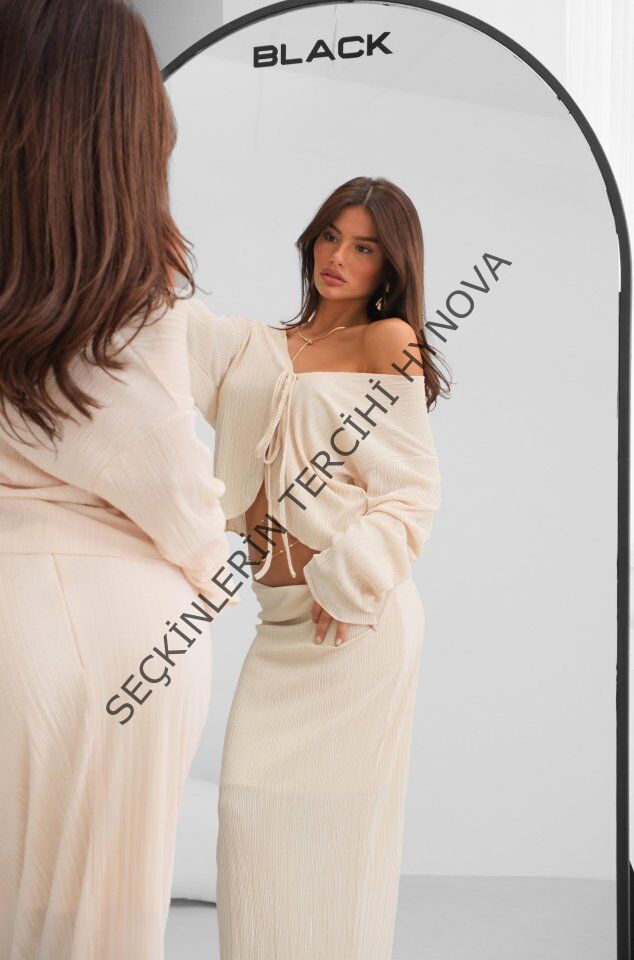 Modelin Ölçüleri: Boy:165, Kg:55, Göğüs:90, Bel:72, Kalça: 100