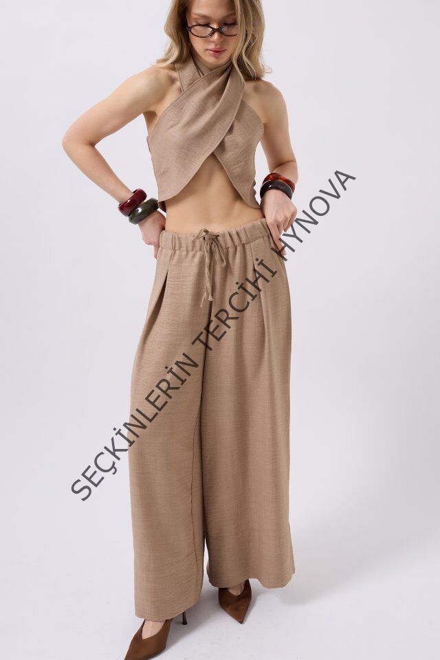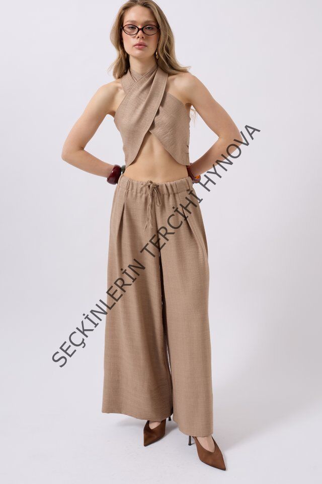 Düşük Bel Oversize Keten Pantolon