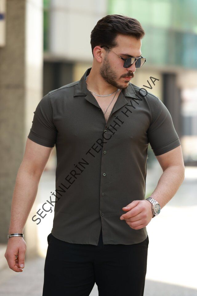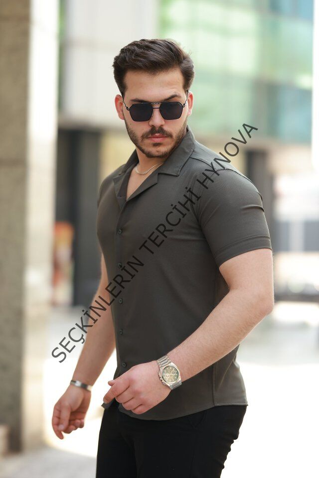 Erkek Apaj Yaka Kısa Kollu Gömlek
