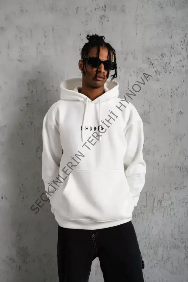 Erkek Astronot Baskılı Kapüşonlu Sweat - Beyaz