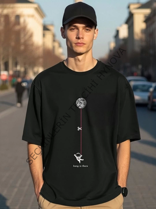 Erkek Baskılı Oversize T-shirt - Siyah