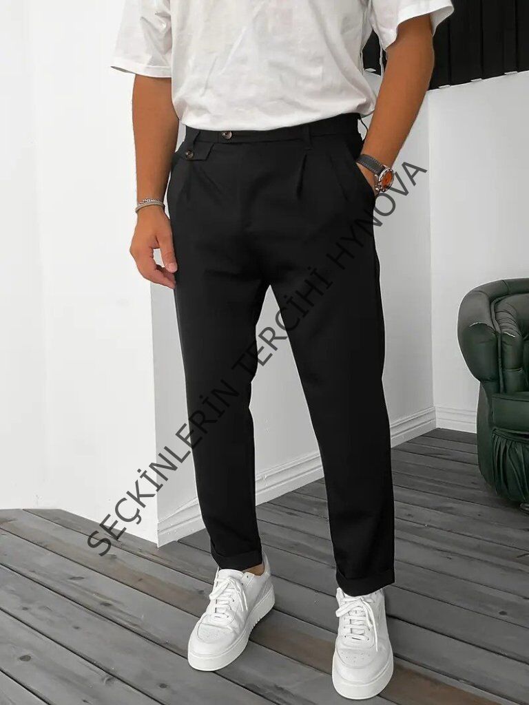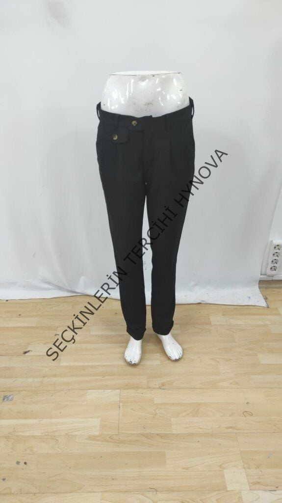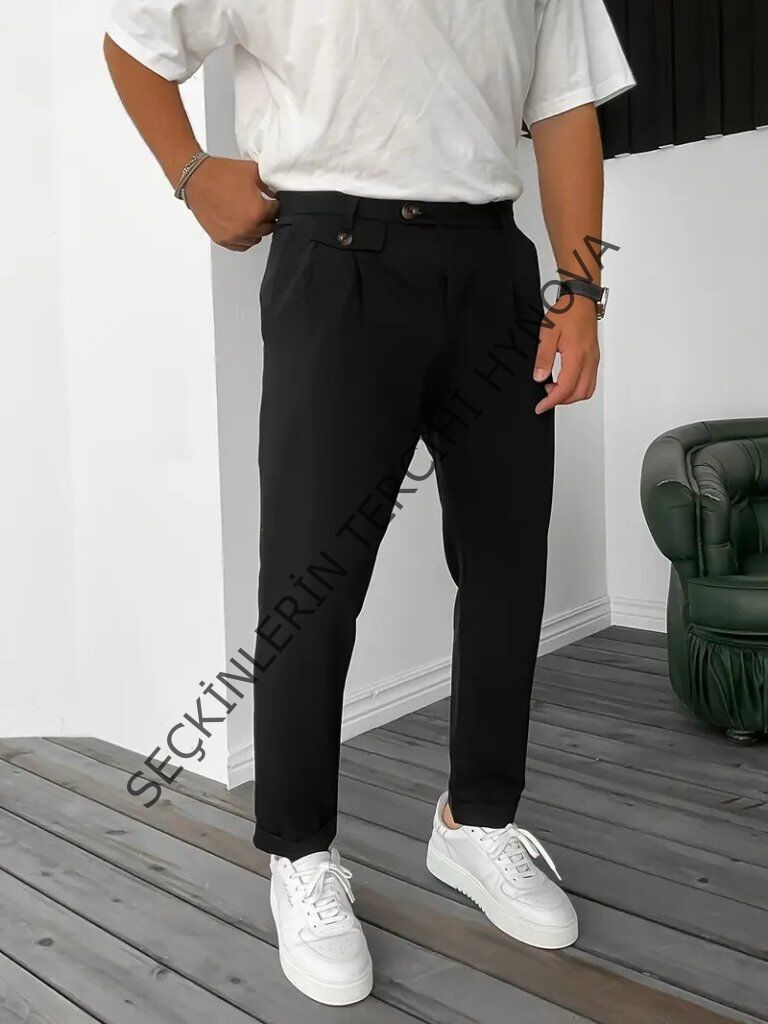 Erkek Belden Düğmeli Cepli Dokuma Pantolon