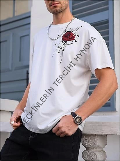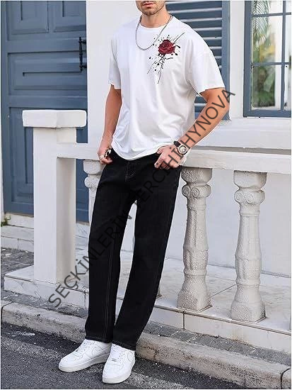 Erkek Bisiklet Yaka Kısa Kol Baskılı T-shirt - Beyaz