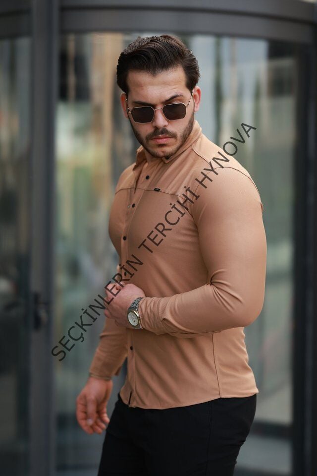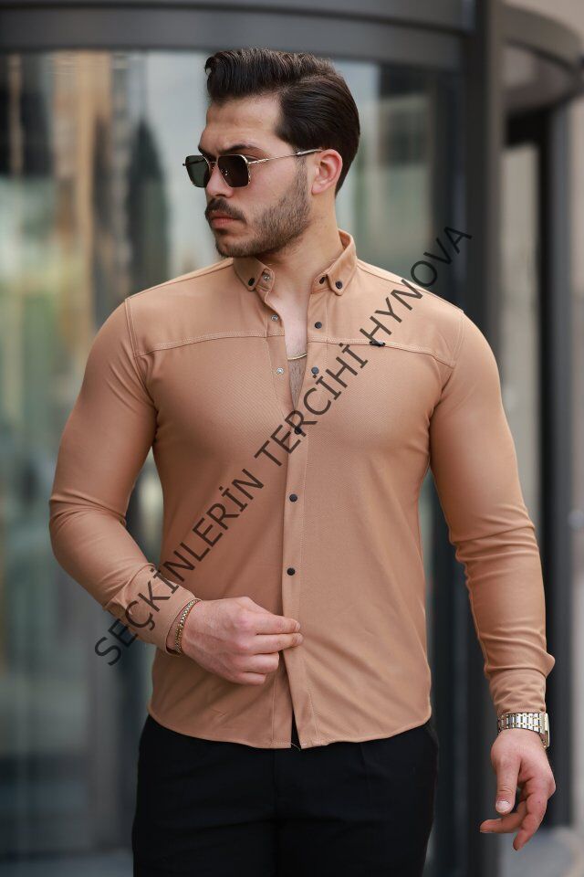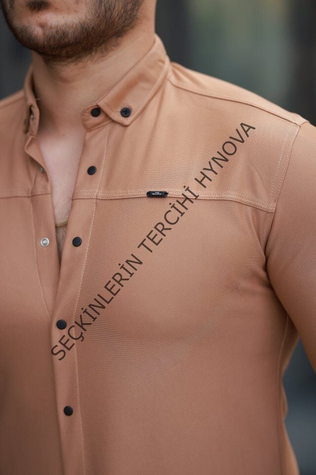 Erkek çıtçıt Düğmeli Dikiş Detaylı Uzun Kollu Gömlek