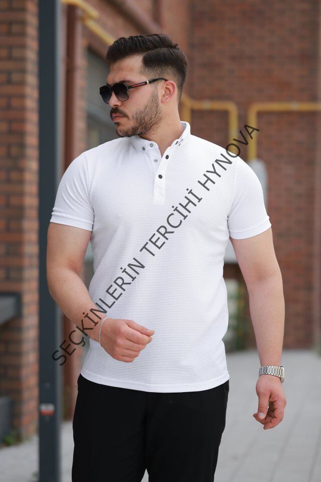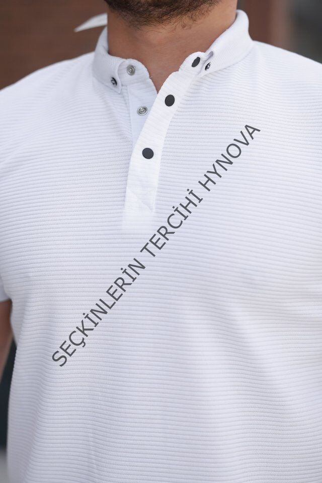 Erkek çizgi Dokulu çıtçıt Yakalı Kısa Kollu T-shirt