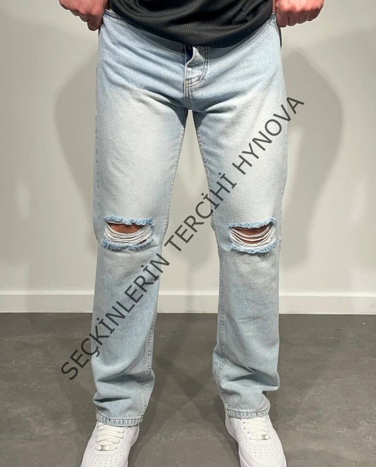 Erkek Dizi Yırtık Detaylı Baggy Jeans