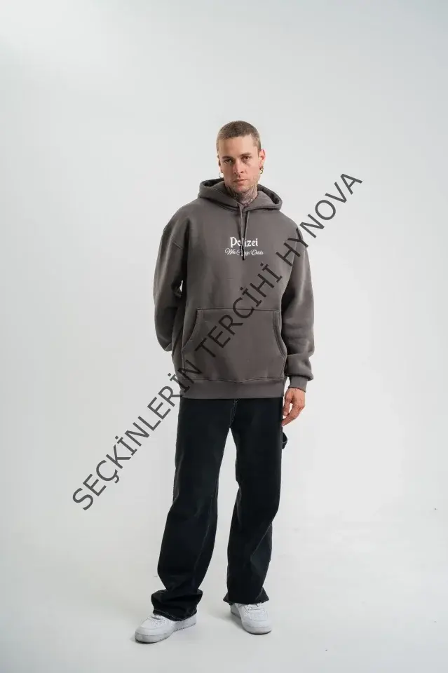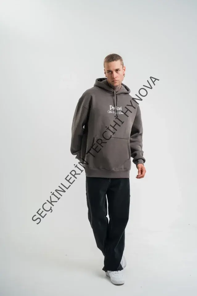 Erkek Double Oversize Kapüşonlu Sweatshirt 3 İplik Pamuklu Göğüs Nakışlı Premium Kalite – Antrasit