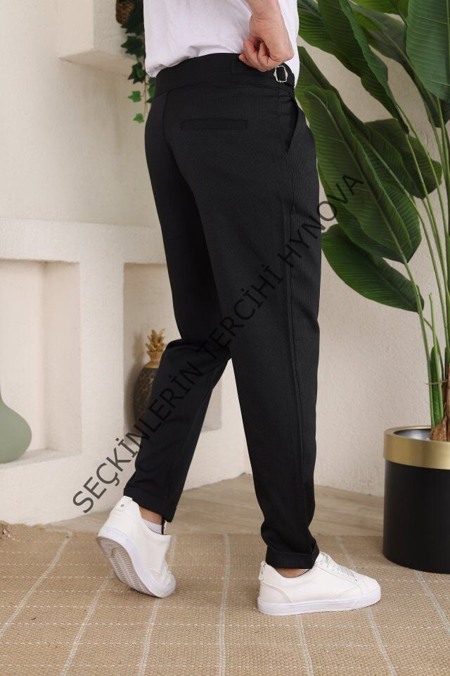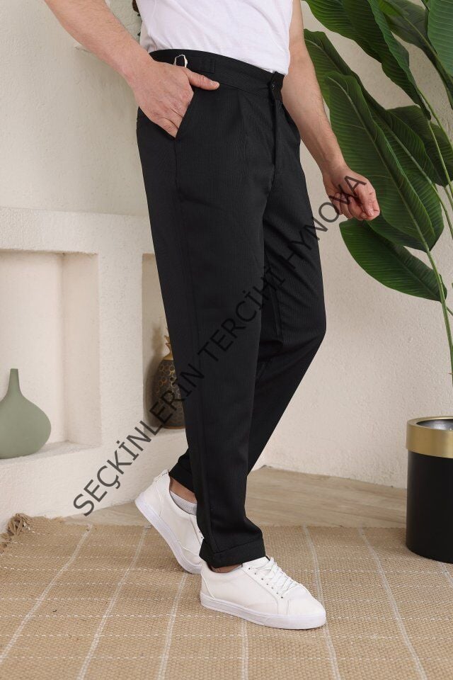 Erkek Duble Paça Yandan Tokalı Cord Desenli Old Money Pantolon