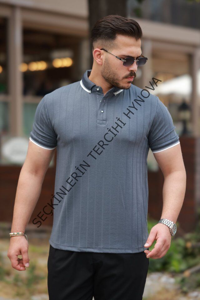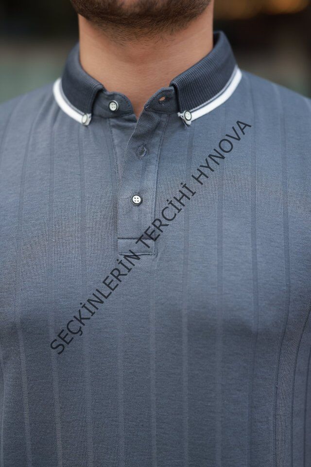 Erkek Düğme Yakalı Jakar Kumaş Kısa Kollu Tişört