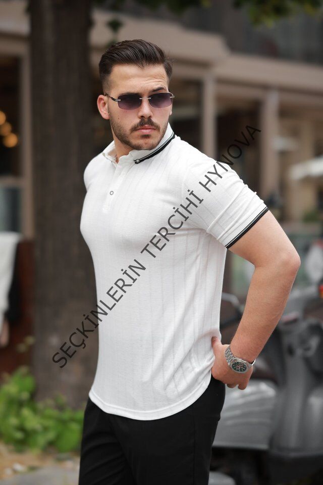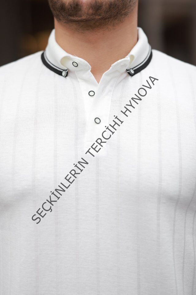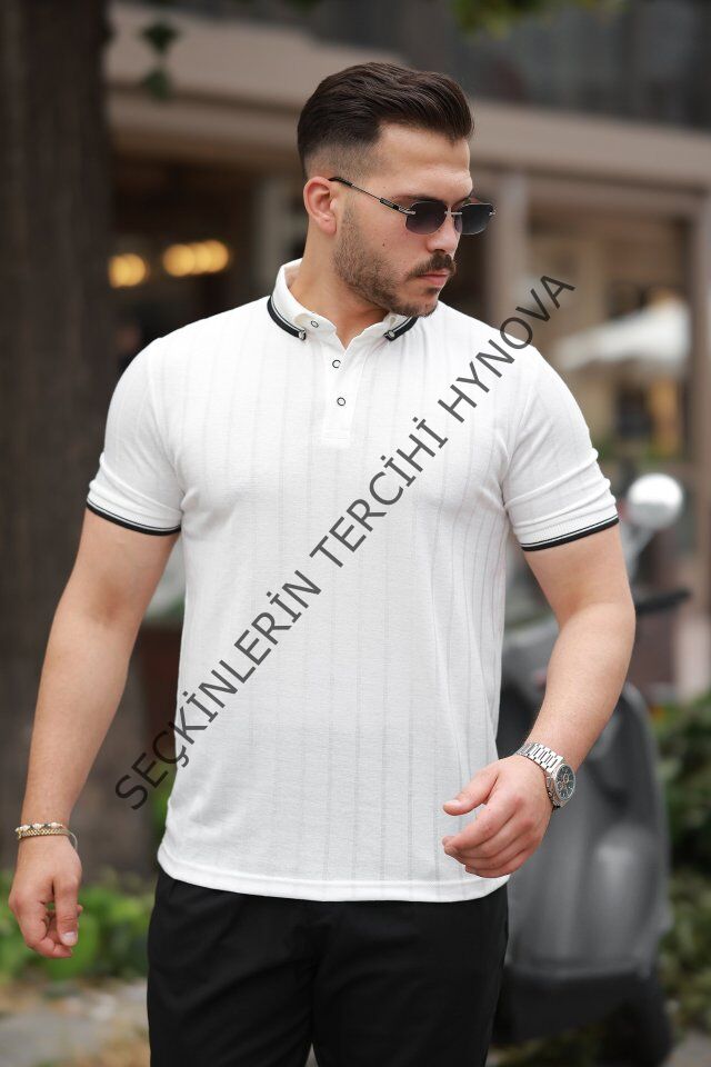 Erkek Düğme Yakalı Jakar Kumaş Kısa Kollu Tişört