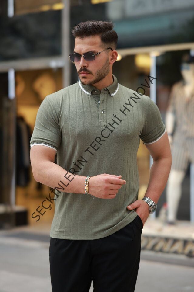 Erkek Düğme Yakalı Jakar Kumaş Kısa Kollu Tişört