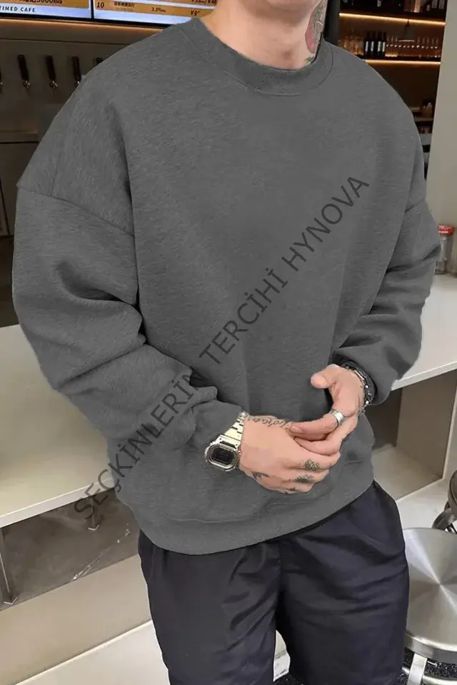 Erkek Düz Bisiklet Yaka Sweat - Füme