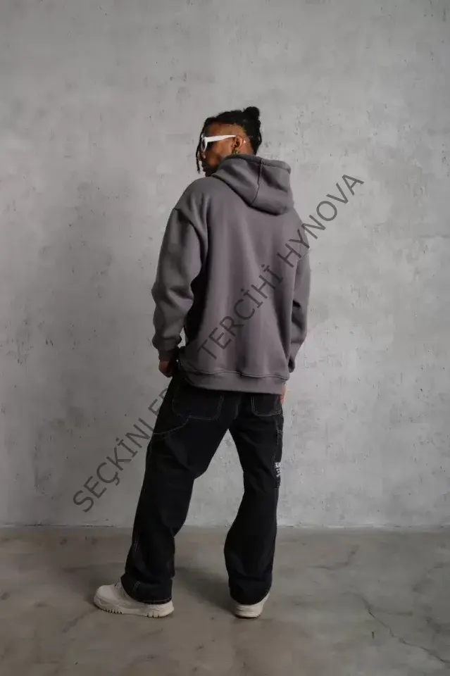 Erkek Düz Kapüşonlu Sweat - Gri