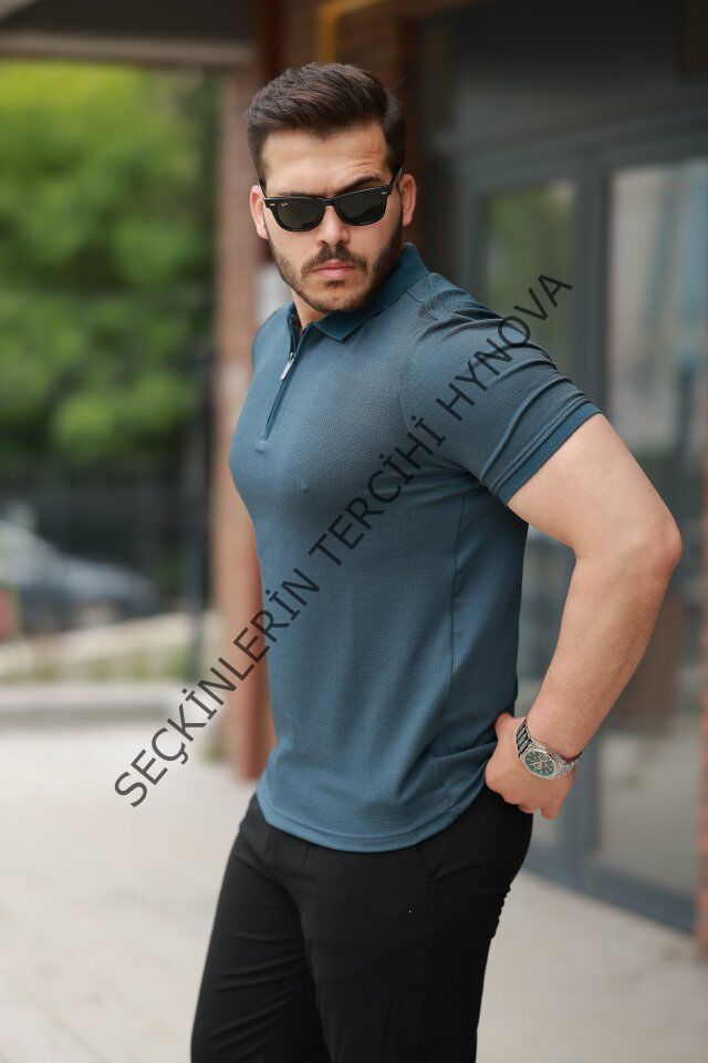 Erkek Fermuarlı Yaka Kısa Kollu Tişört