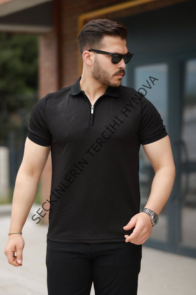 Erkek Fermuarlı Yaka Kısa Kollu Tişört