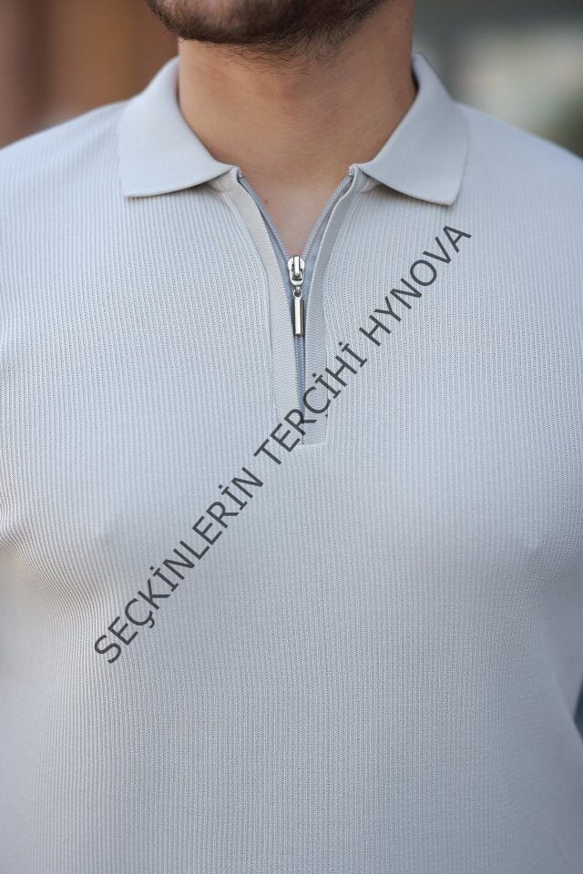 Erkek Fermuarlı Yakalı Kısa Kollu Tshirt