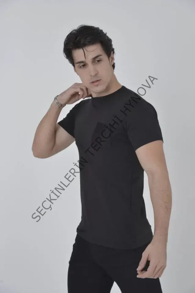 Erkek File Cepli Slim Fit T-shirt - Siyah