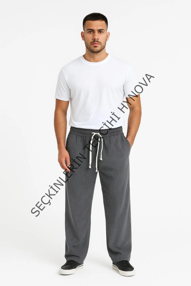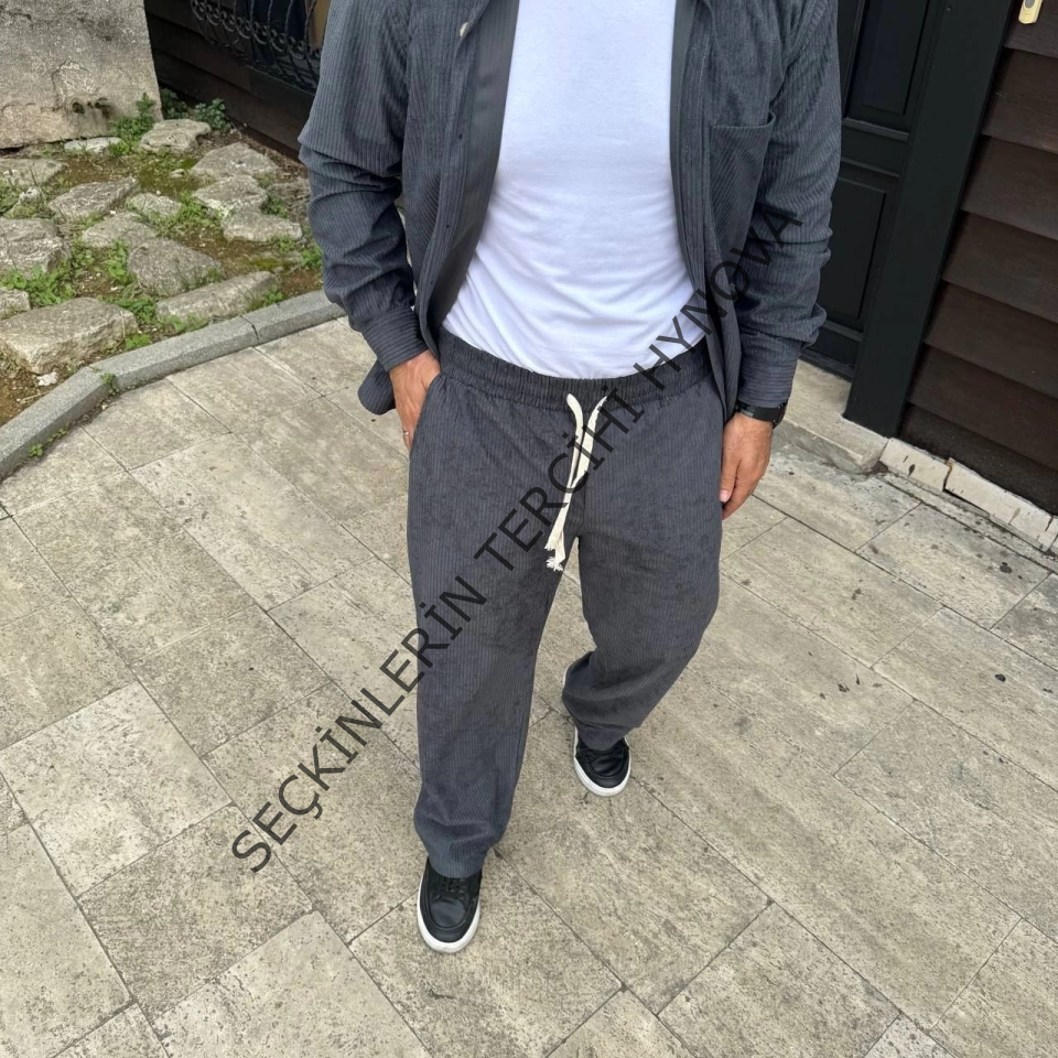 Erkek Fitilli Kadife Cepli Buggy Pantolon Oversize Rahat Kalıp - Füme