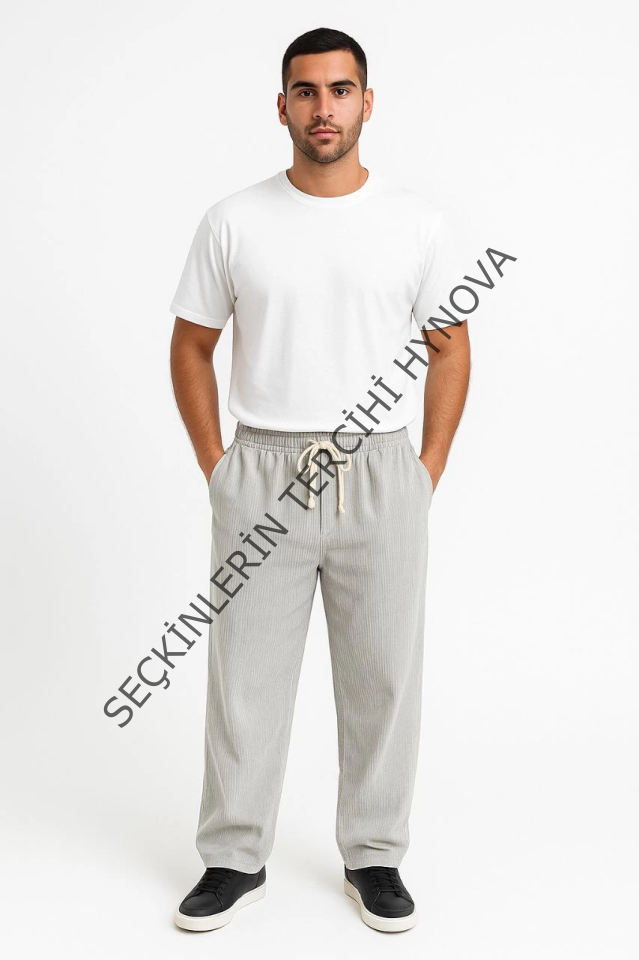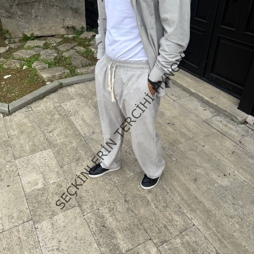 Erkek Fitilli Kadife Cepli Buggy Pantolon Oversize Rahat Kalıp - Gri