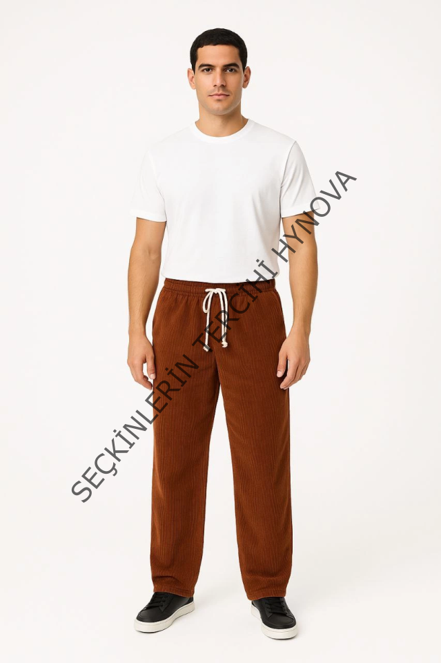 Erkek Fitilli Kadife Cepli Buggy Pantolon Oversize Rahat Kalıp - Kahverengi
