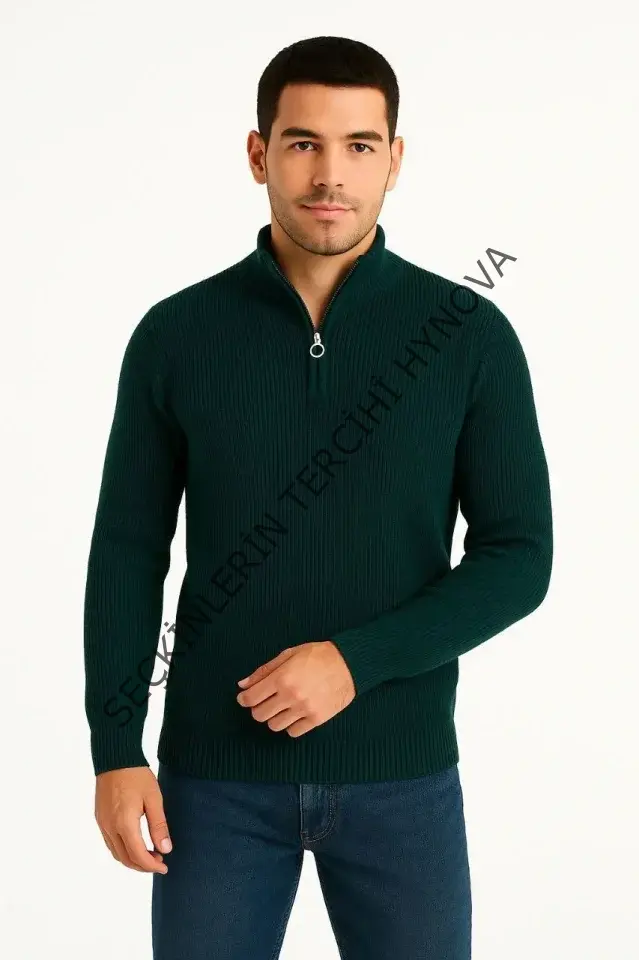 Erkek Fitilli Triko Kazak 2’li Set – Siyah - Haki Kalın Dokuma Pamuklu Regular Fit V Yaka Fermuarlı Uzun Kollu Rahat Kışlık Kazak Kombini