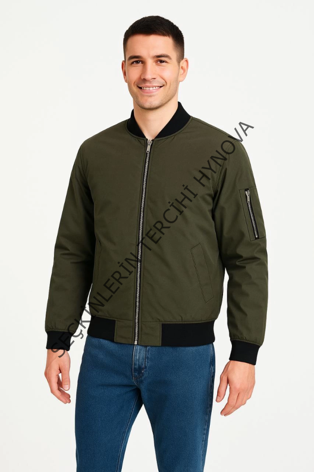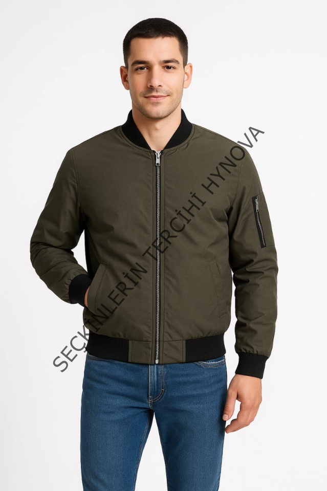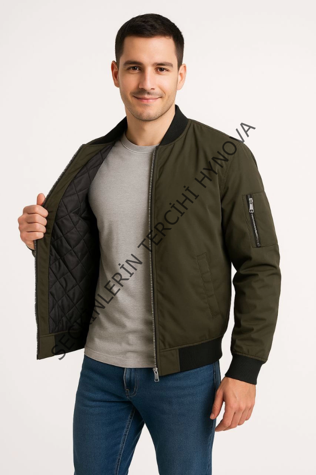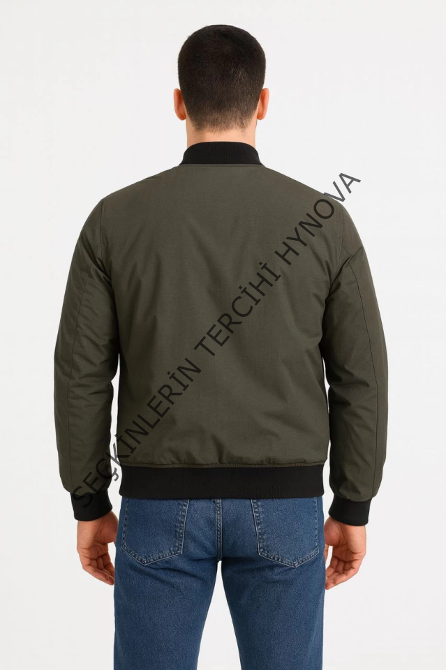 Erkek Içi Astarlı Fermuarlı Bomber Mont Ceket - Haki