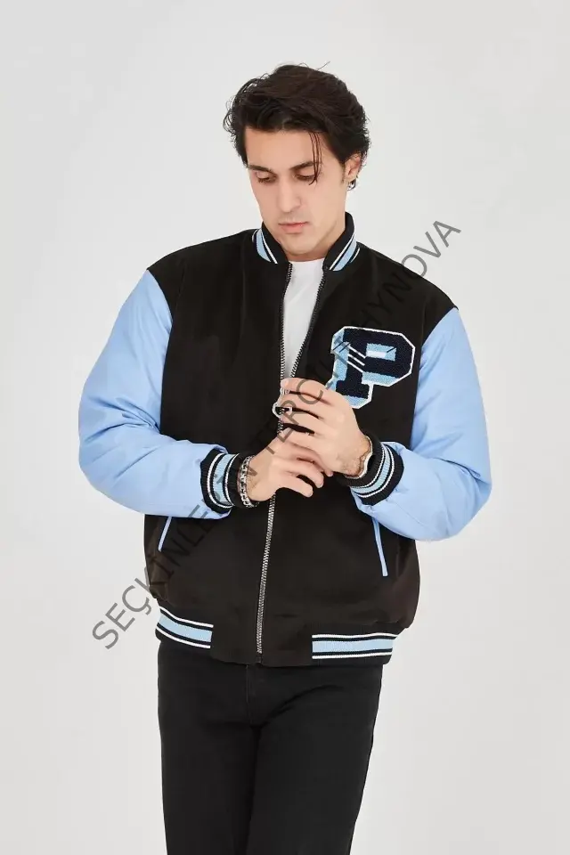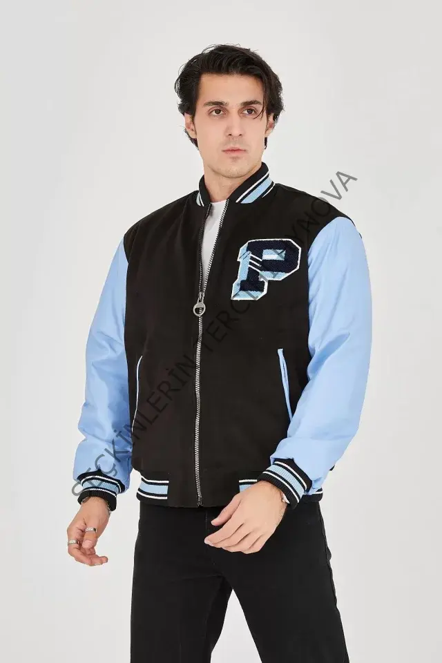Erkek İçten Elyaf Ve Astarlı Kolları Suni Deri Ceket - Mavi