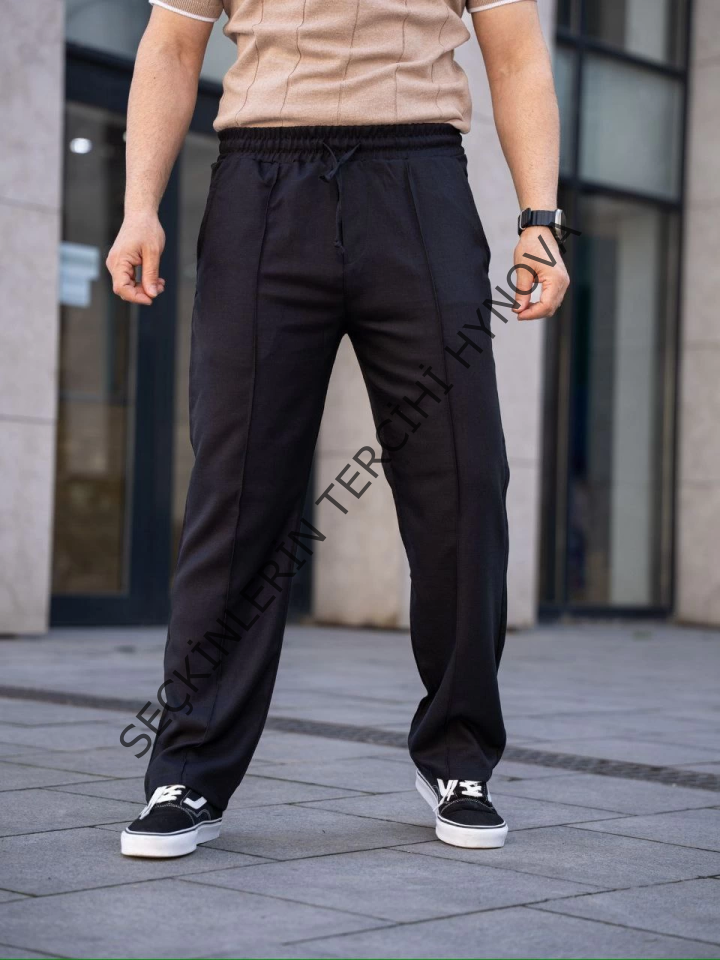 Erkek Keten Cepli Çıma Dikişli Jogger Buggy Pantalon Rahat Kalıp - Siyah