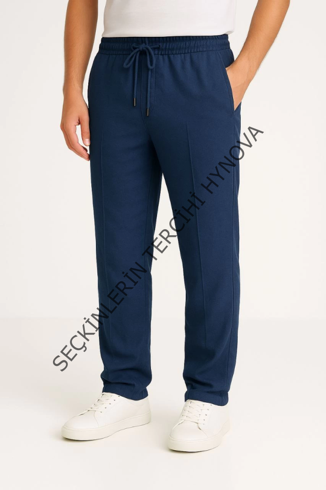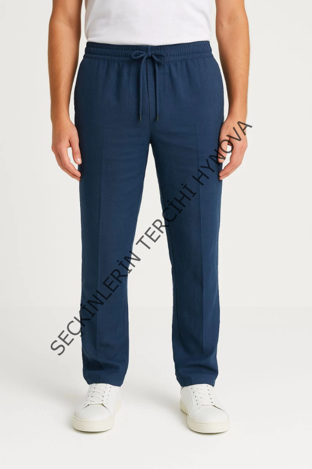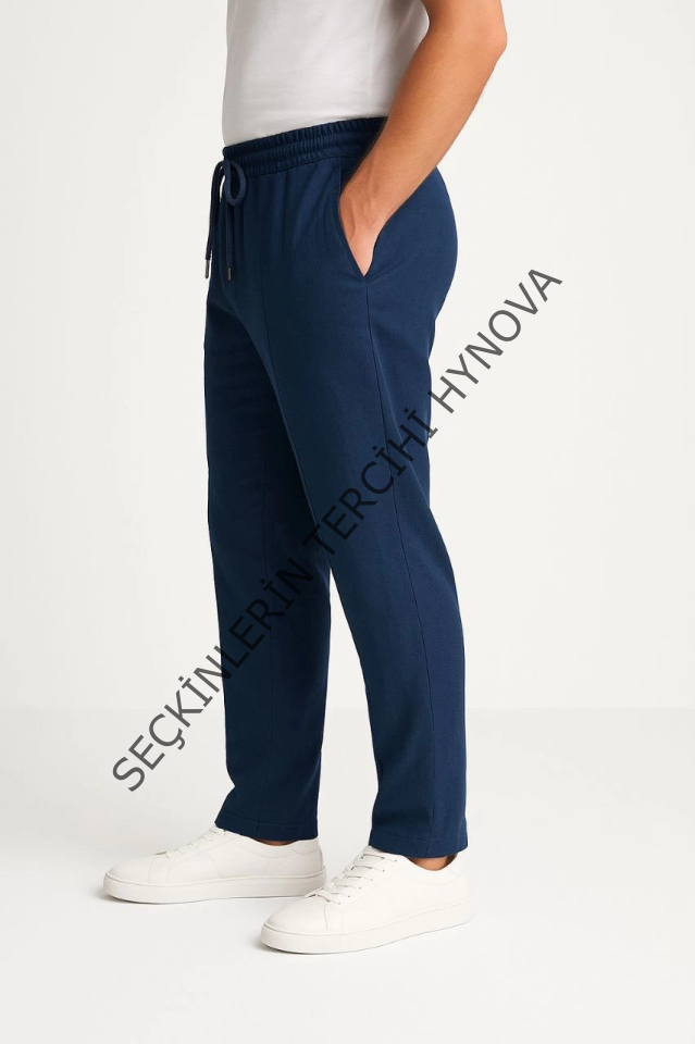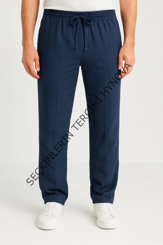 Erkek Keten Pantolon – Cepli, Beli Lastikli Ve Bağcıklı, Nefes Alan Rahat Kalıp, Yazlık Ve Baharlık Günlük Giyim, Şık - Konforlu Boru Paça Model - Lacivert