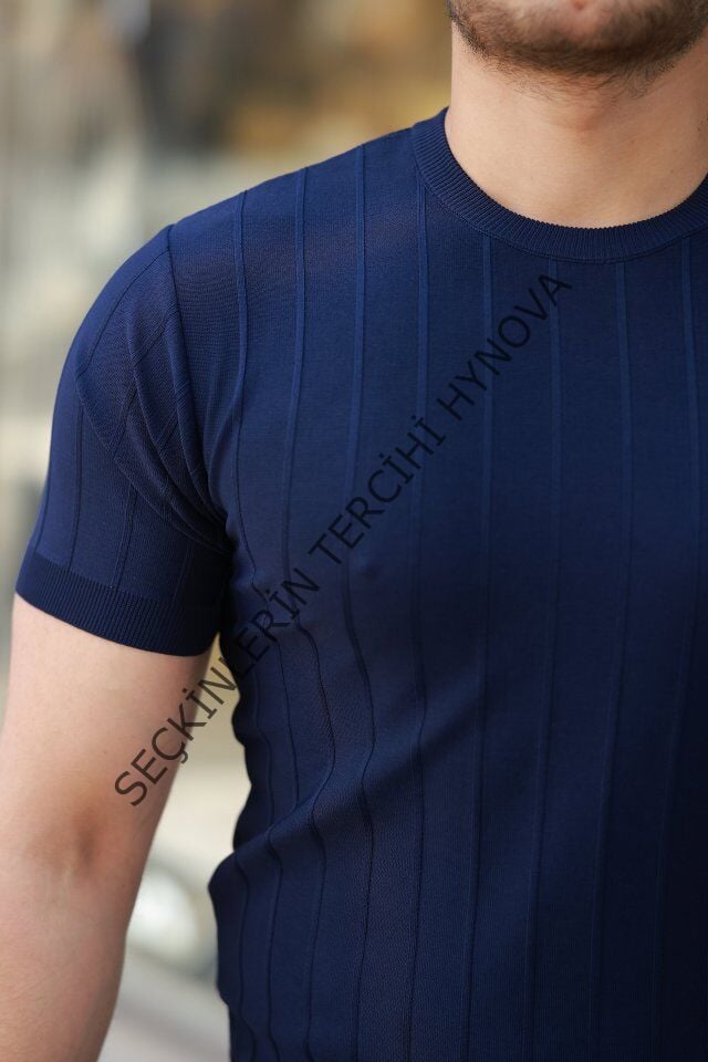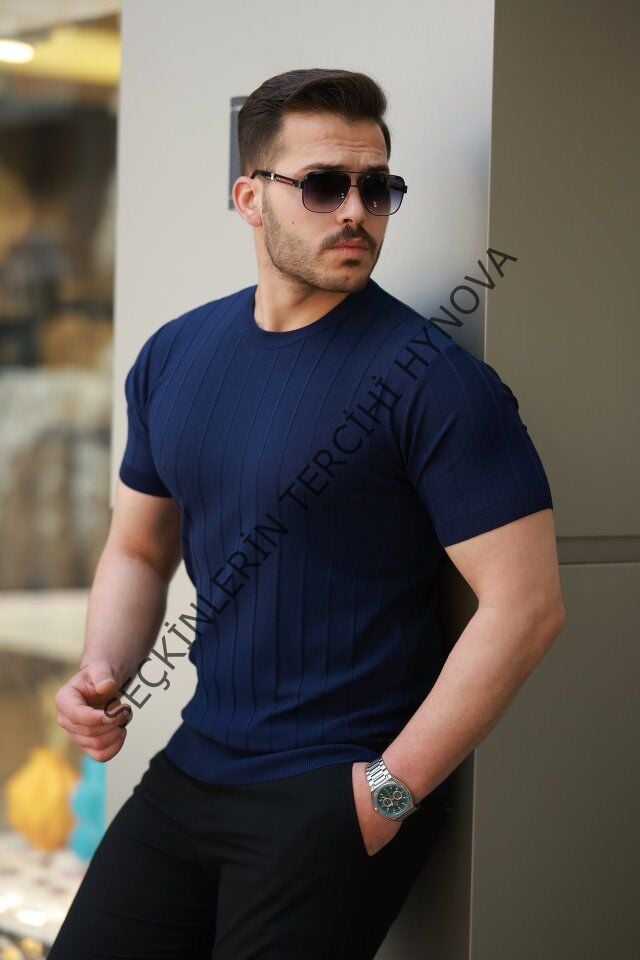 Erkek Kısa Kollu Bisiklet Yaka çizgili Triko Tişört