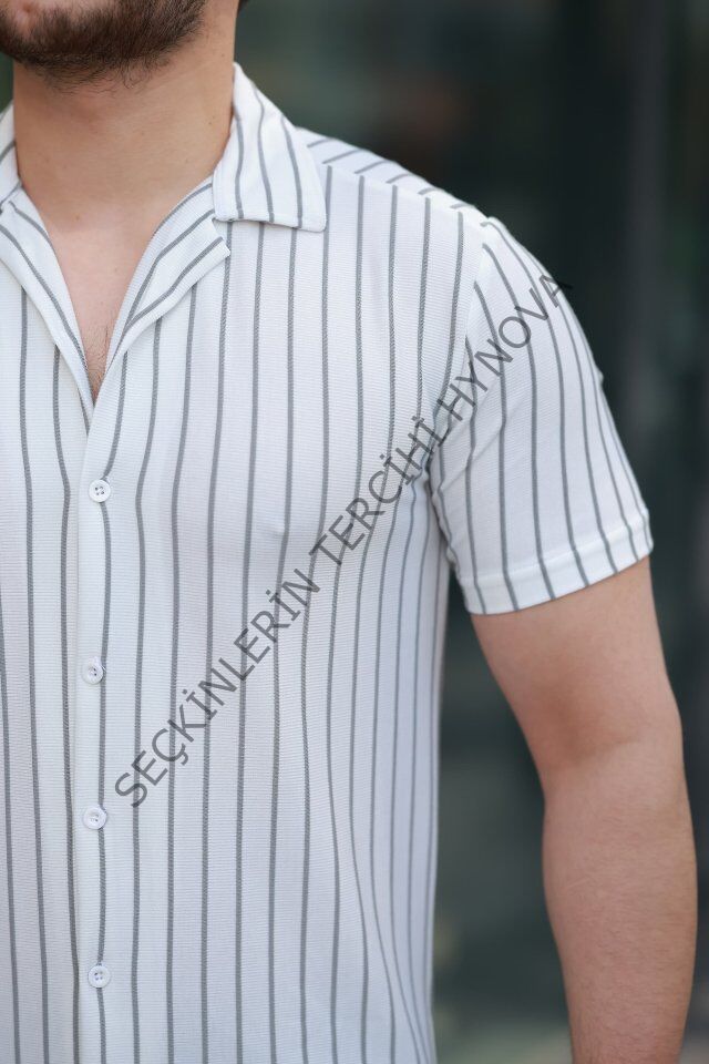 Erkek Kısa Kollu Gri çizgi Desenli örme Kumaş Pamuklu Gömlek