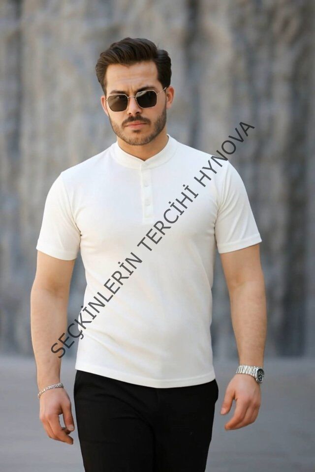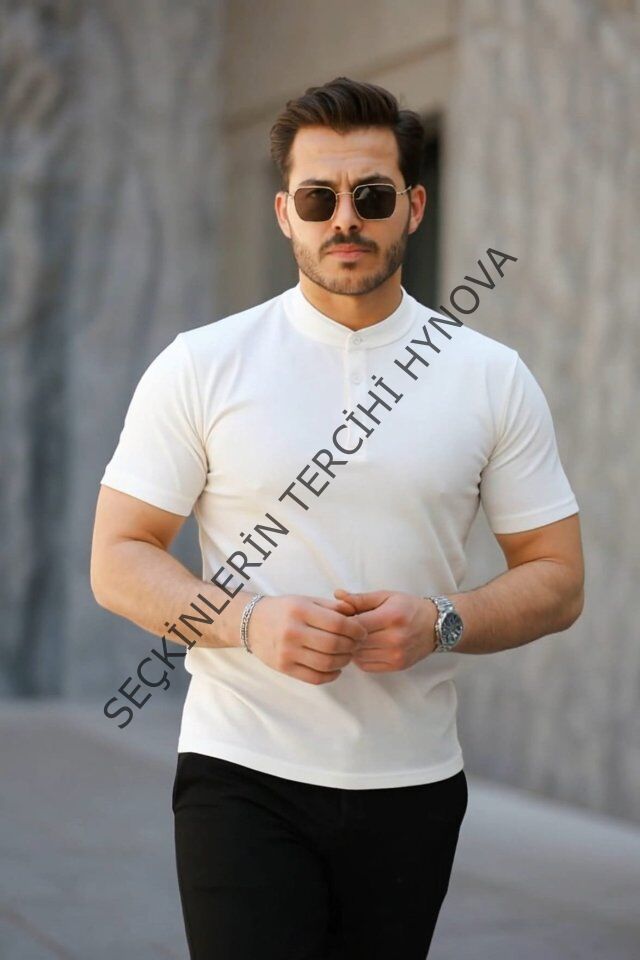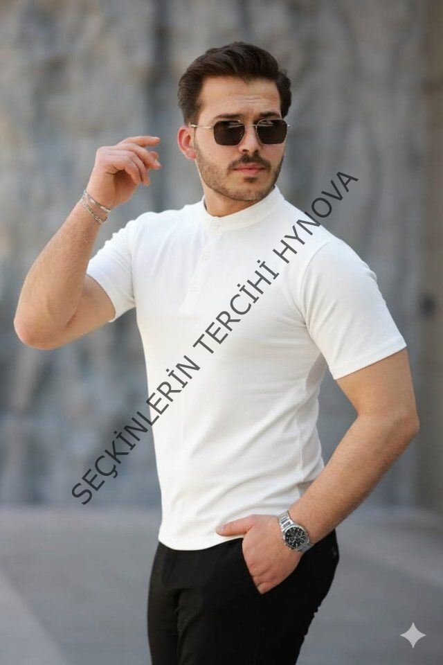 Erkek Kısa Kollu Hakim Yaka önü Düğmeli Viskon Tişört