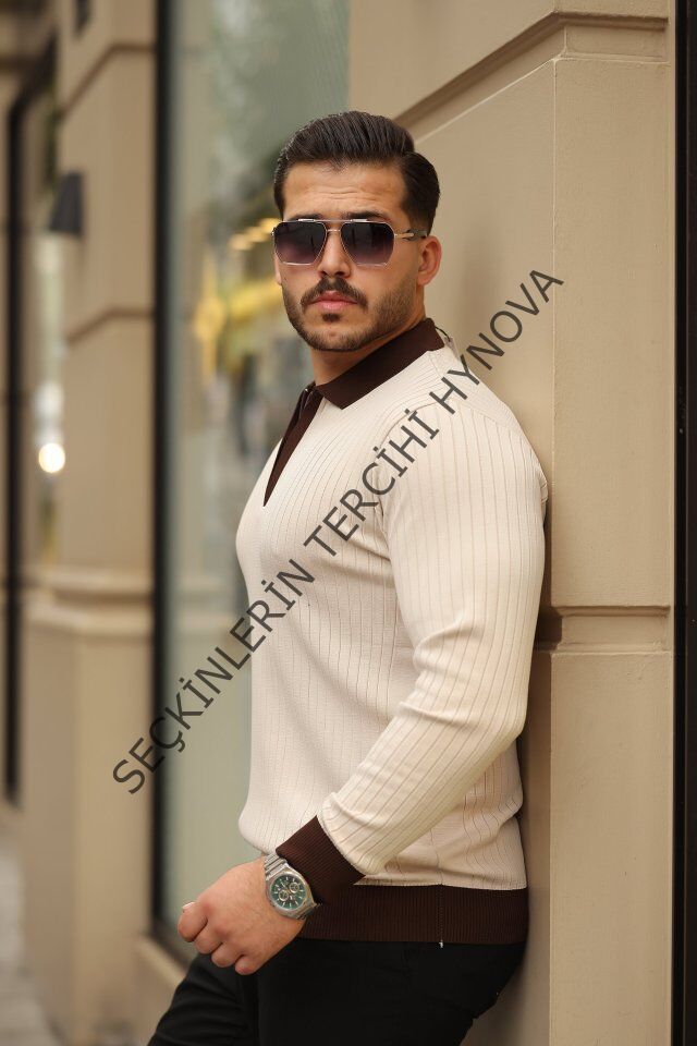 Erkek Kol Ve Yaka Detaylı Uzun Kollu Triko