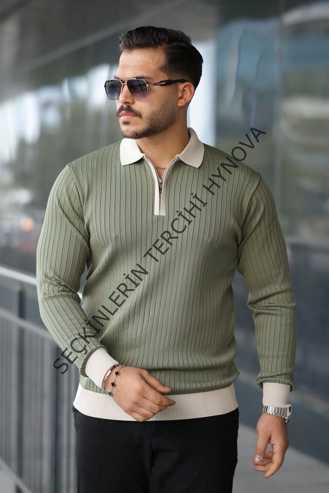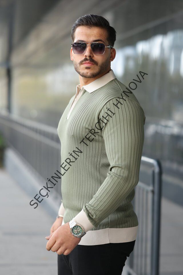 Erkek Kol Ve Yaka Detaylı Uzun Kollu Triko