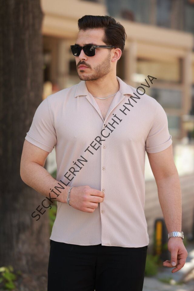 Erkek Ottoman Kumaş Apaj Yaka Kısa Kollu Gömlek