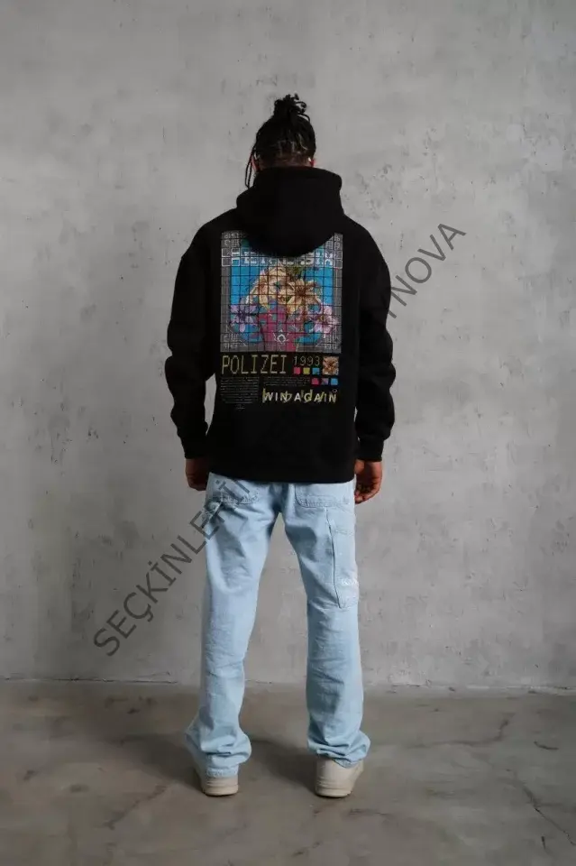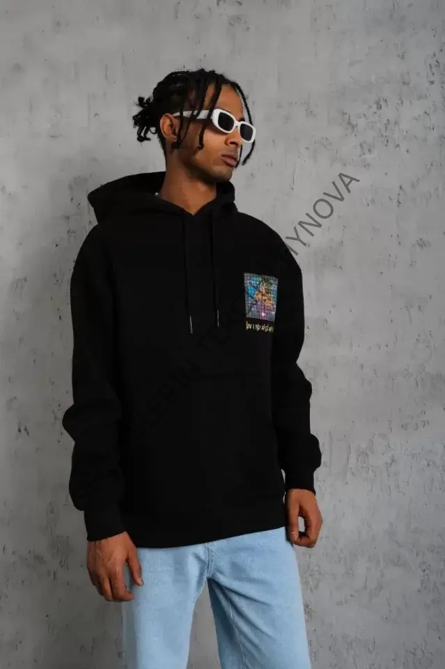 Erkek Patel Six Baskılı Kapüşonlu Sweat - Siyah