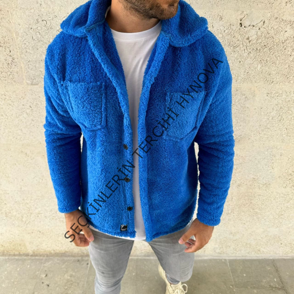 Erkek Pelüş Polar Hırka Gömlek – Yakalı, İlik Düğmeli, Göğüs Cepli, Yumuşak Dokulu Kışlık Regular Fit Rahat Günlük Model - Saks Mavisi