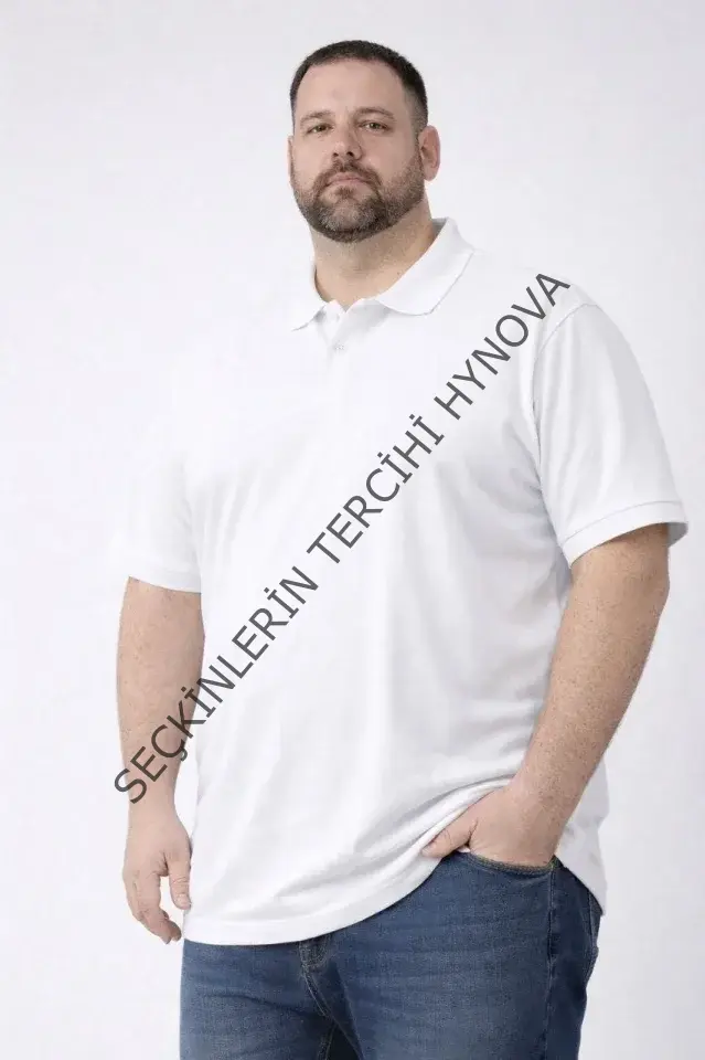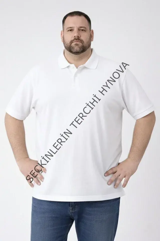 Erkek Pike Kumaş Düğmeli Yaka Battal Büyük Beden Günlük Kısa Kol Tişört T-shirt - Beyaz