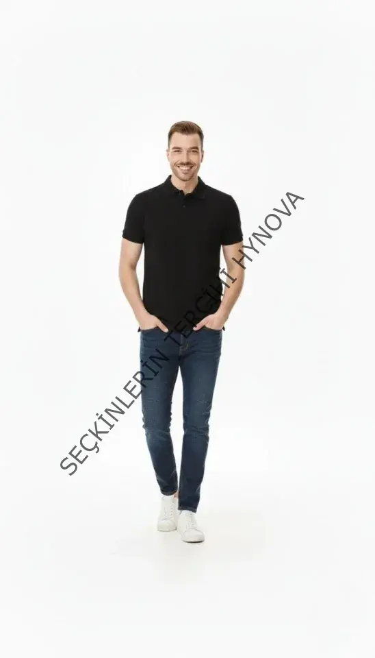 Erkek Pike Kumaş Düğmeli Yaka Regular Fit Günlük Kısa Kol Tişört T-shirt - Siyah