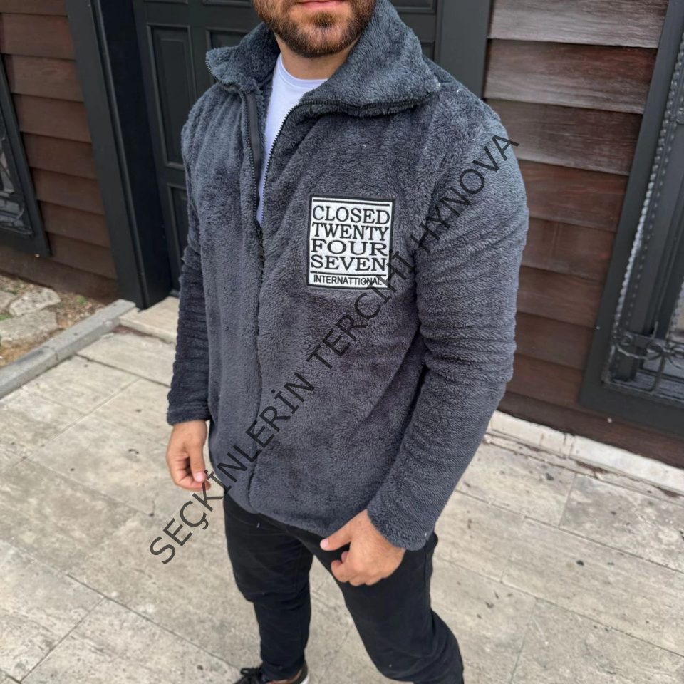 Erkek Polar Fermuarlı Sweatshirt – Kapüşonsuz, Cepli, Yumuşak Dokulu, Oversize Rahat Kalıp, Kışlık Sıcak Tutan Fermuarlı Üst - Füme