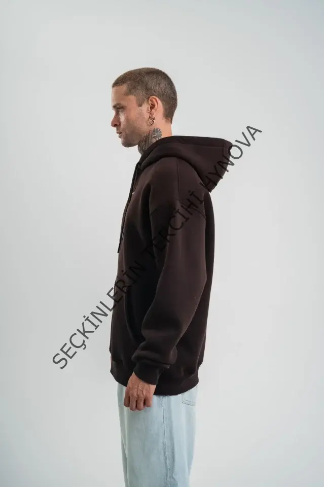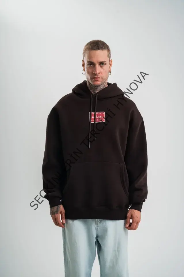 Erkek Premium Nakışlı Kapşonlu Sweatshirt Double Oversize Üç İplik Pamuklu - Siyah