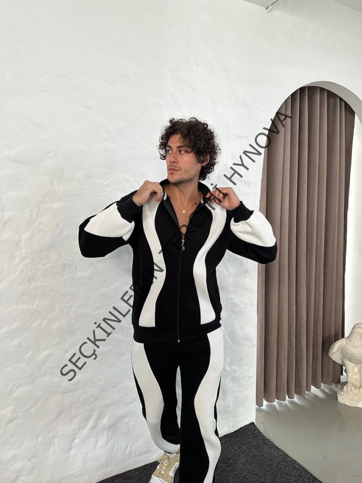 Erkek Premium Parçalı Eşofman Takım - Dik Yaka Fermuarlı Sweatshirt, - Siyah
