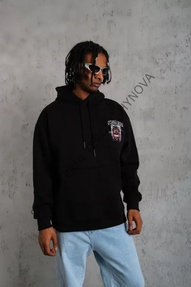 Erkek SCHOOL BOY Baskılı Kapüşonlu Sweat - Siyah