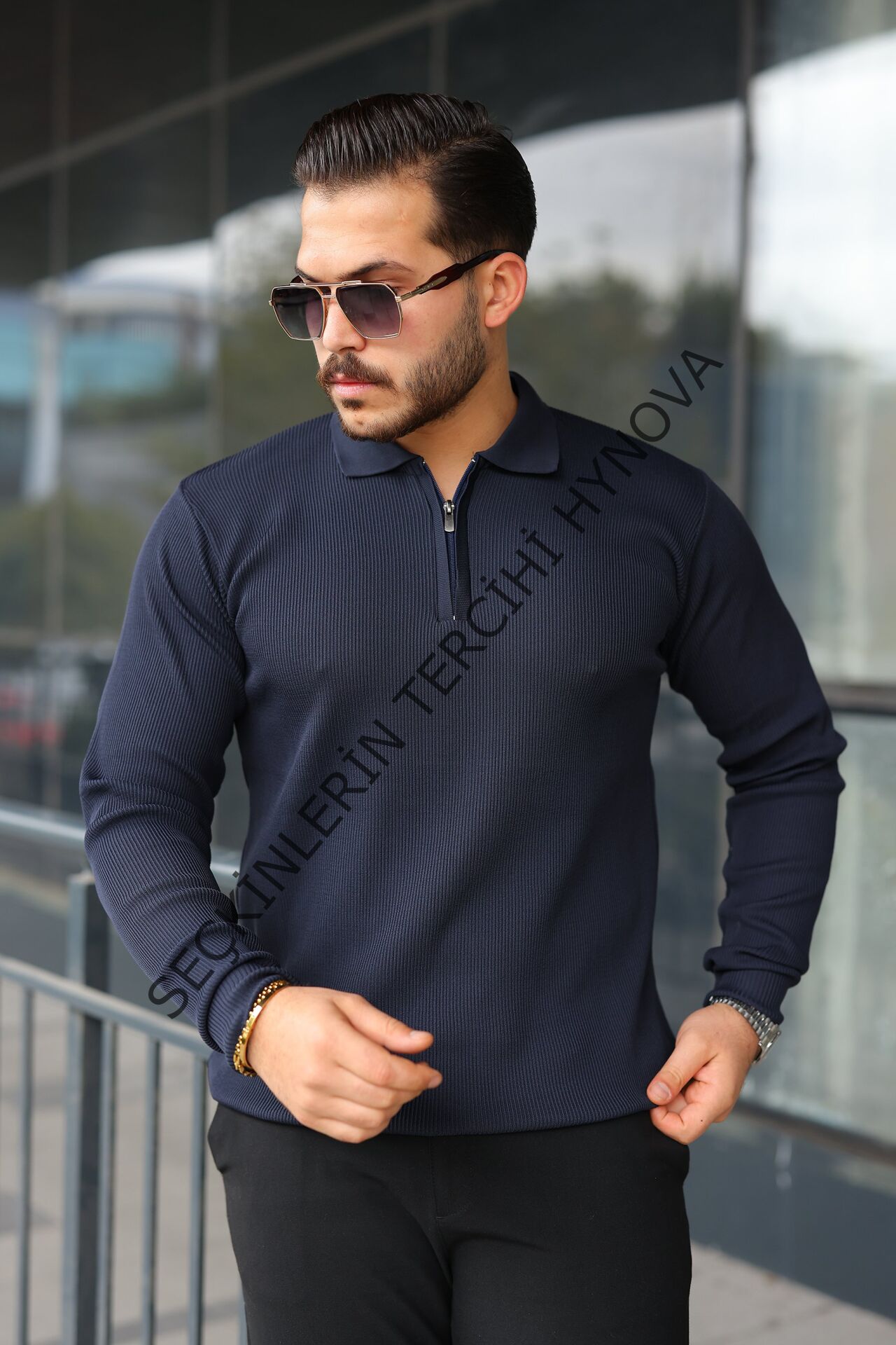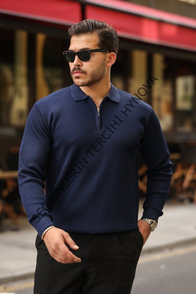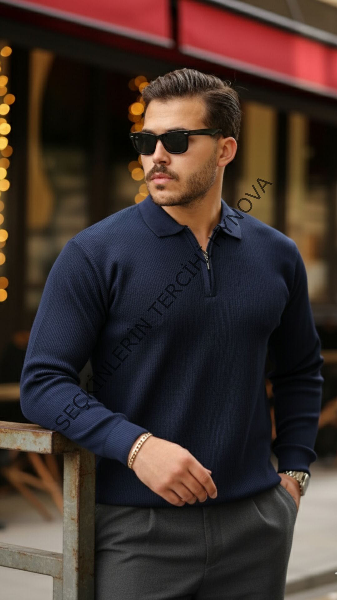 Erkek Selanik örme Yakalı Uzun Kollu Triko 173443