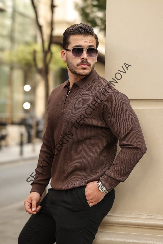Erkek Selanik örme Yakalı Uzun Kollu Triko