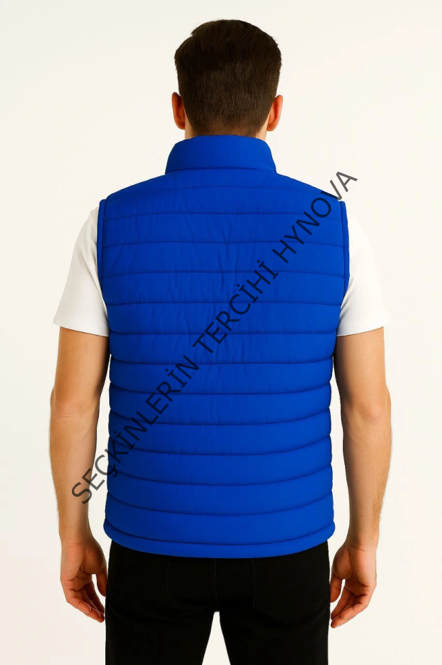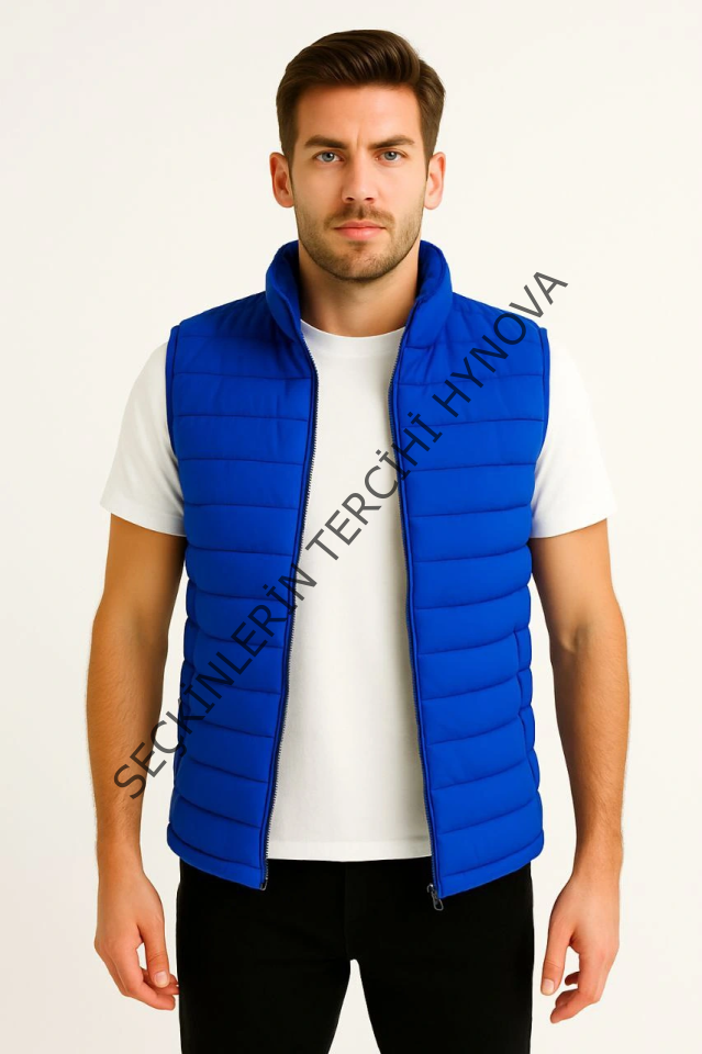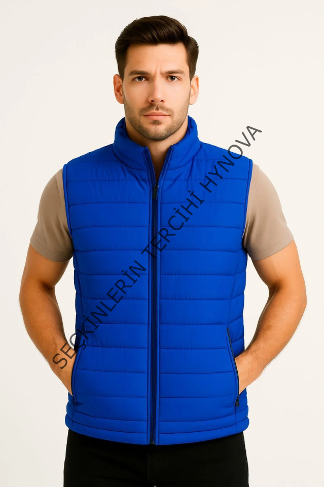 Erkek Şişme Fermuarlı Yelek Su Itici Kapitone Astarlı Kumaş Cepli Hafif Kışlık Spor Rahat Kalıp - Saks Mavisi