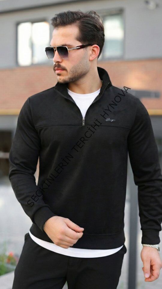 Erkek Süet Yarım Fermuar Dik Yaka Sweat