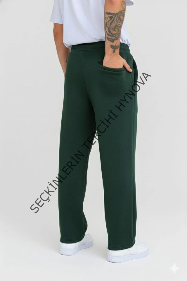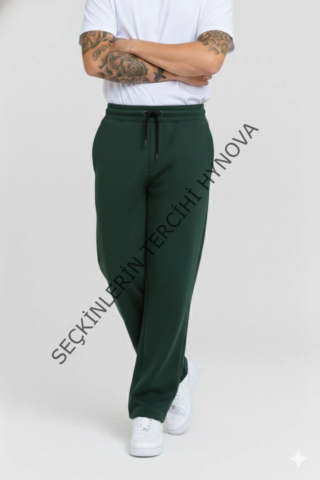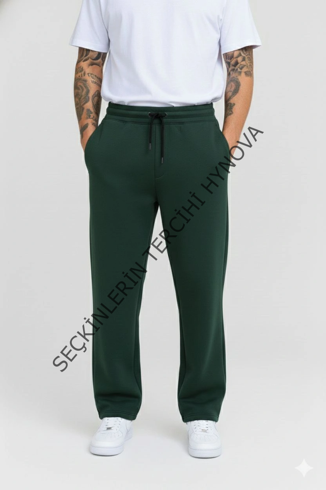 Erkek Üç Iplik Kışlık Pamuklu Ovarsize Bağcıklı Düz Paça Cepli Eşofman Altı Spor Rahat Model - Haki
