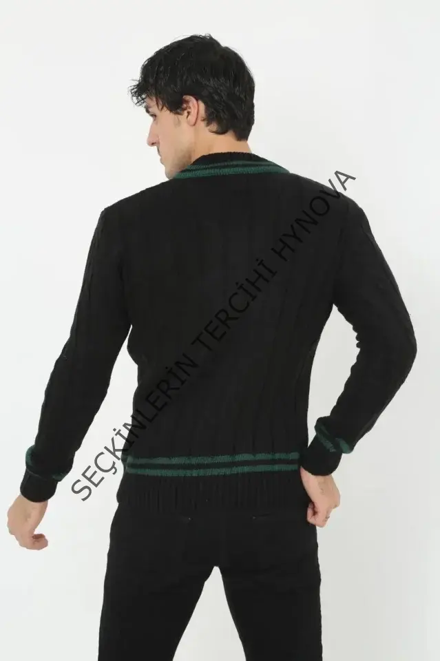 Erkek V Yaka Örgülü Kazak - Siyah